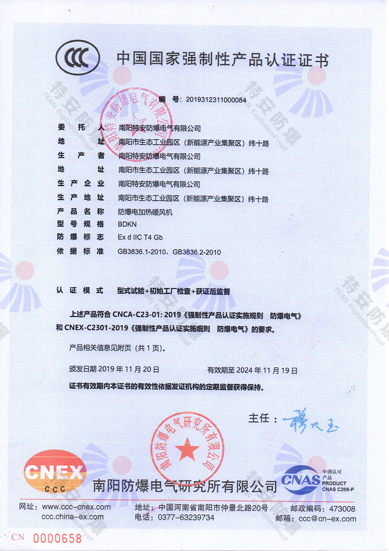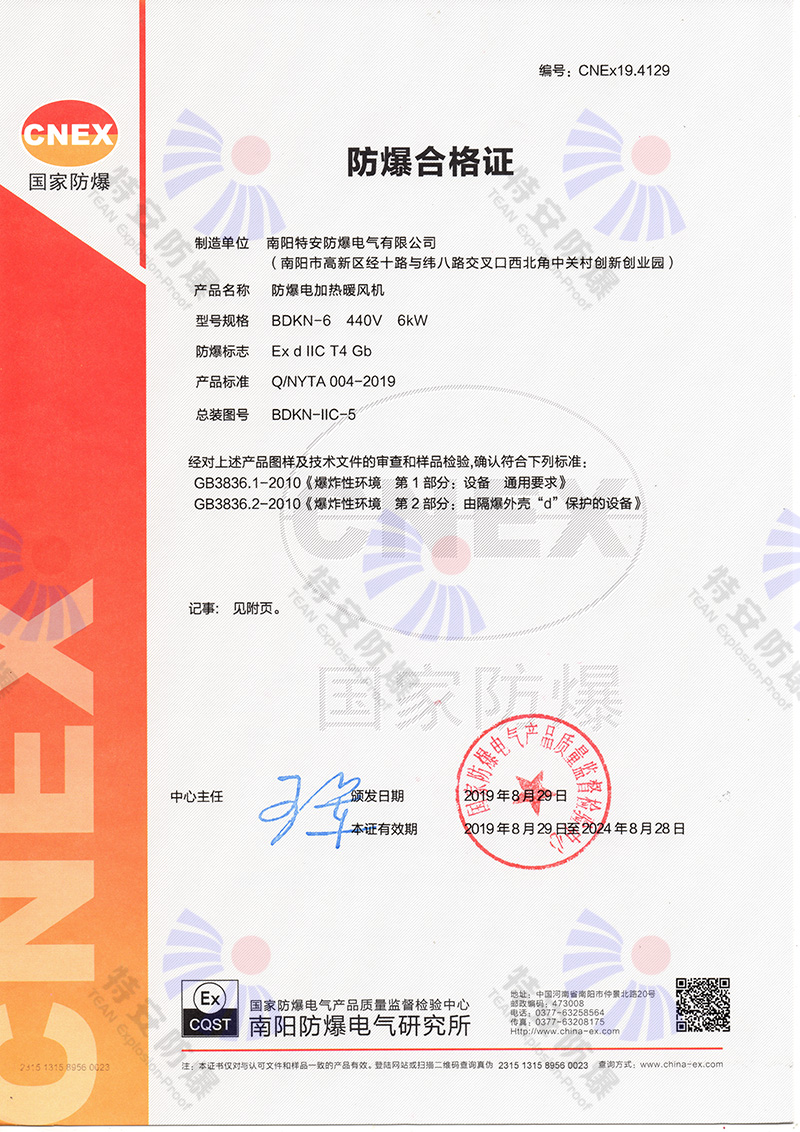防爆電加熱暖風(fēng)機CNEX合格證 3C證書(shū)