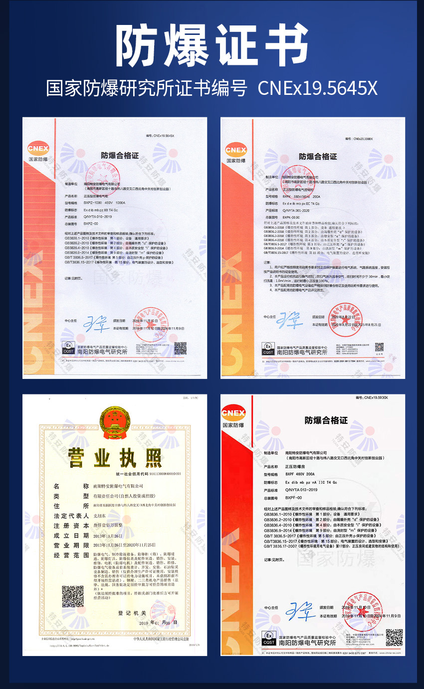 特安防爆專(zhuān)業(yè)生產(chǎn):防爆控制柜,防爆電氣控制柜,防爆電器控制柜,我們擁有防爆研究所頒發(fā)的CNEX合格證,證書(shū)編號為CNEX19.4124