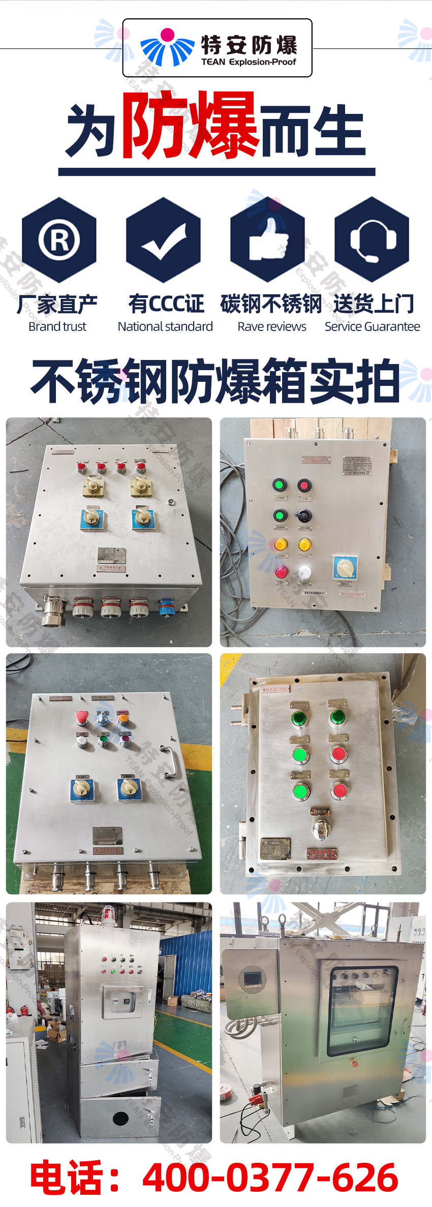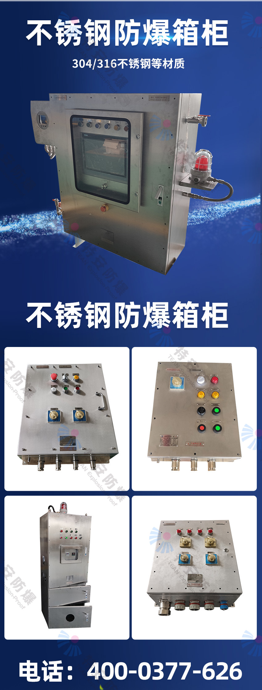 特安防爆專業(yè)生產(chǎn):防爆配電箱,防爆控制箱,防爆電控箱,防爆接線箱,防爆配電柜,防爆電氣控制箱,防爆電氣控制柜等各種防爆箱柜。我們擁有防爆研究所頒發(fā)的CNEX合格證,證書編號為CNEX19.4124